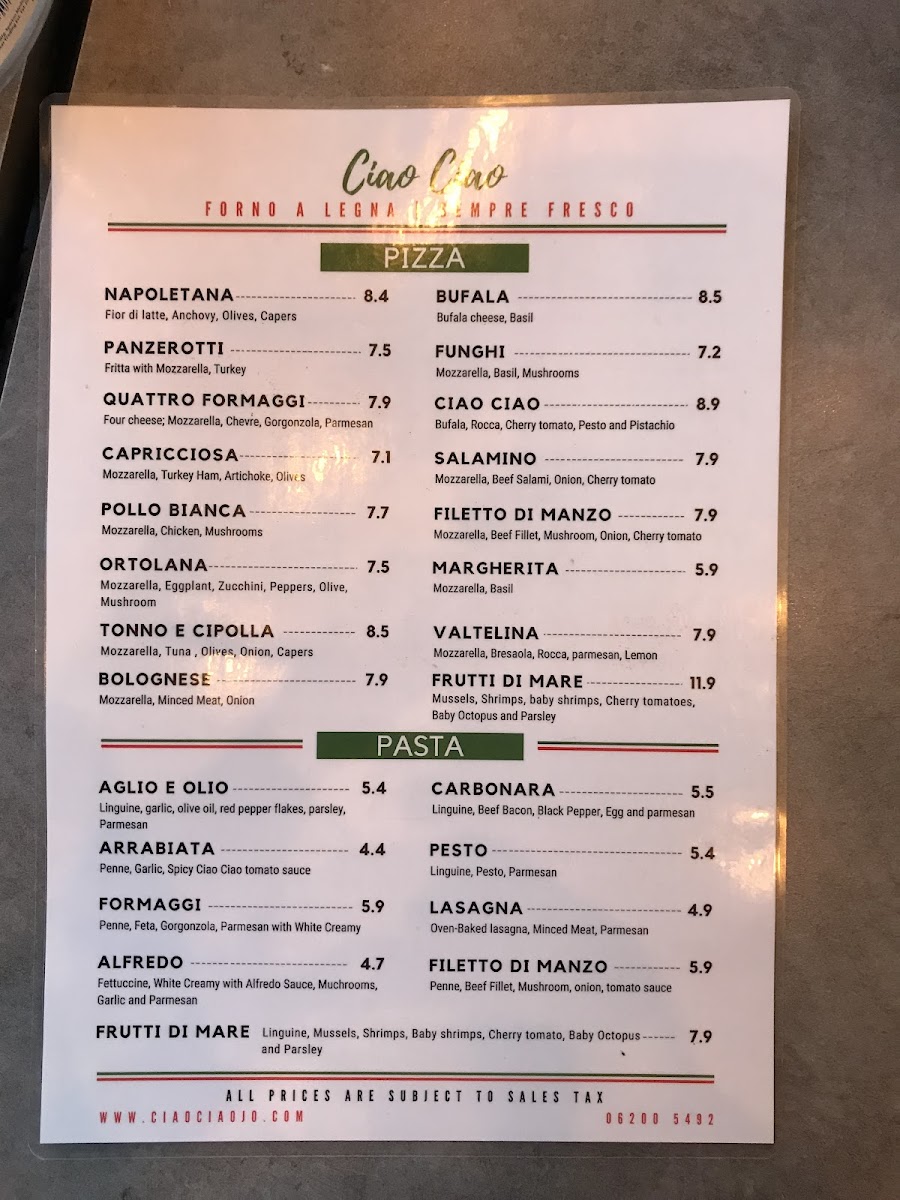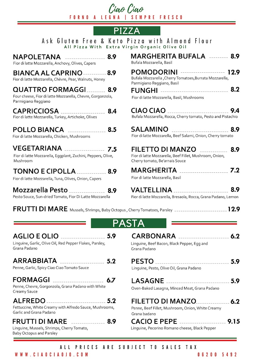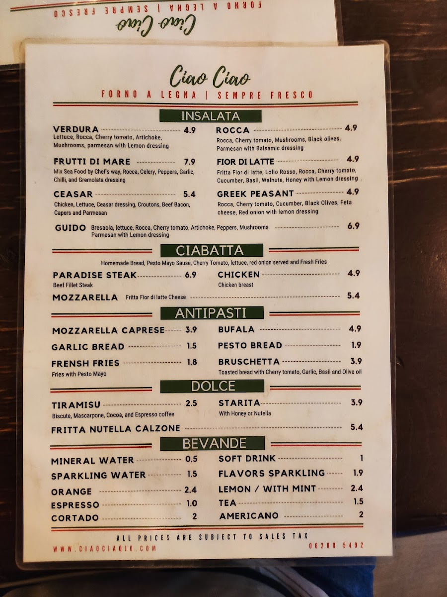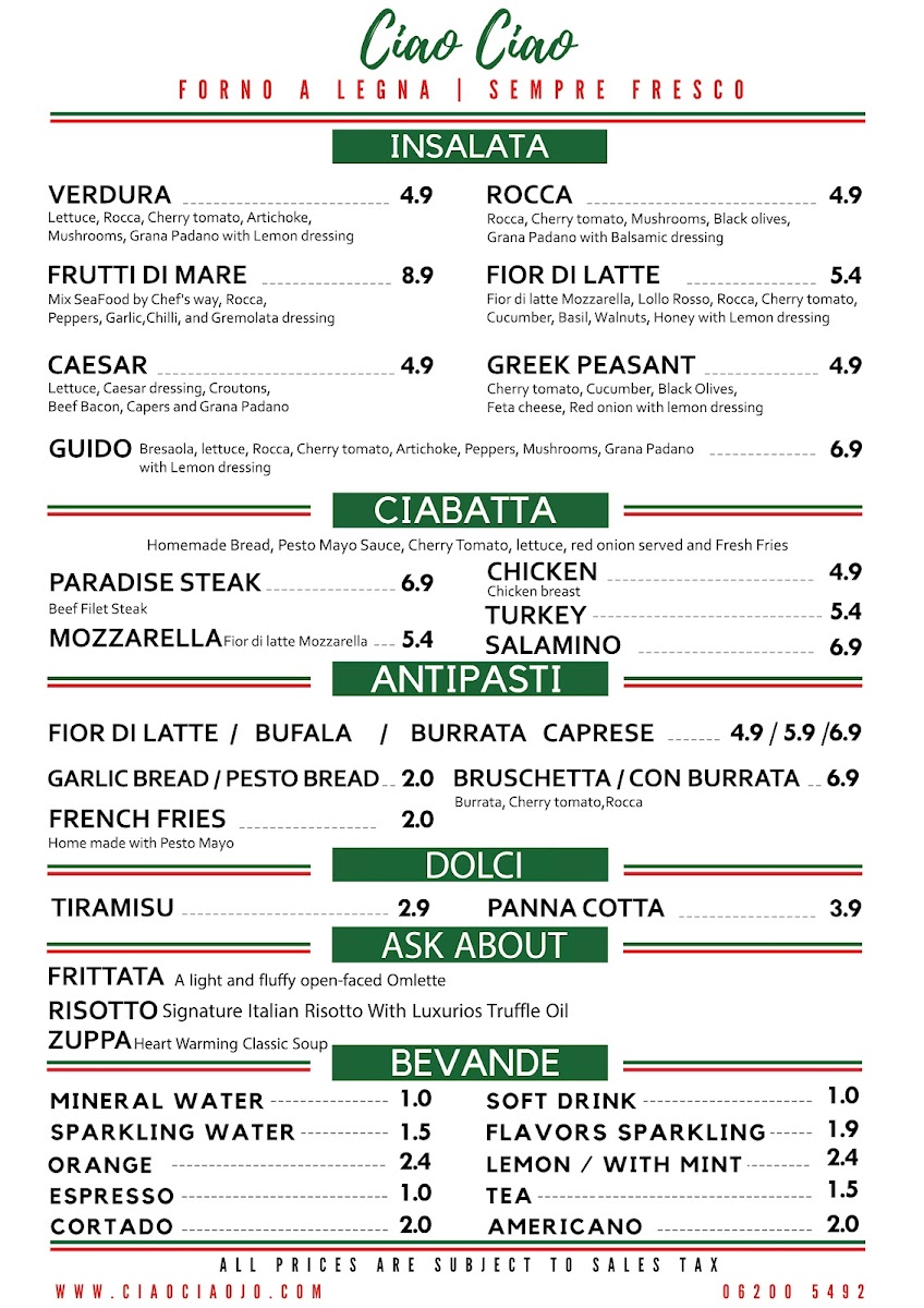 Ciao Ciao Menu