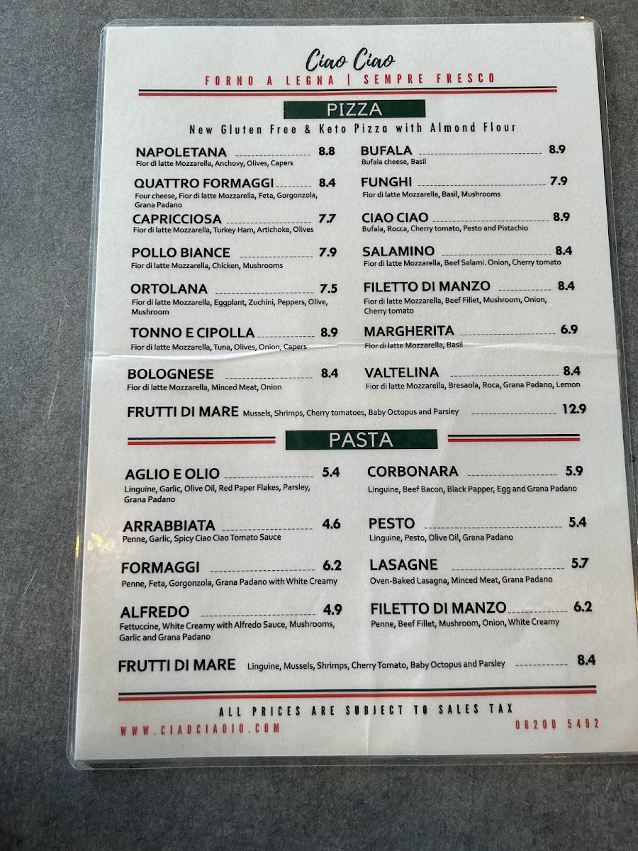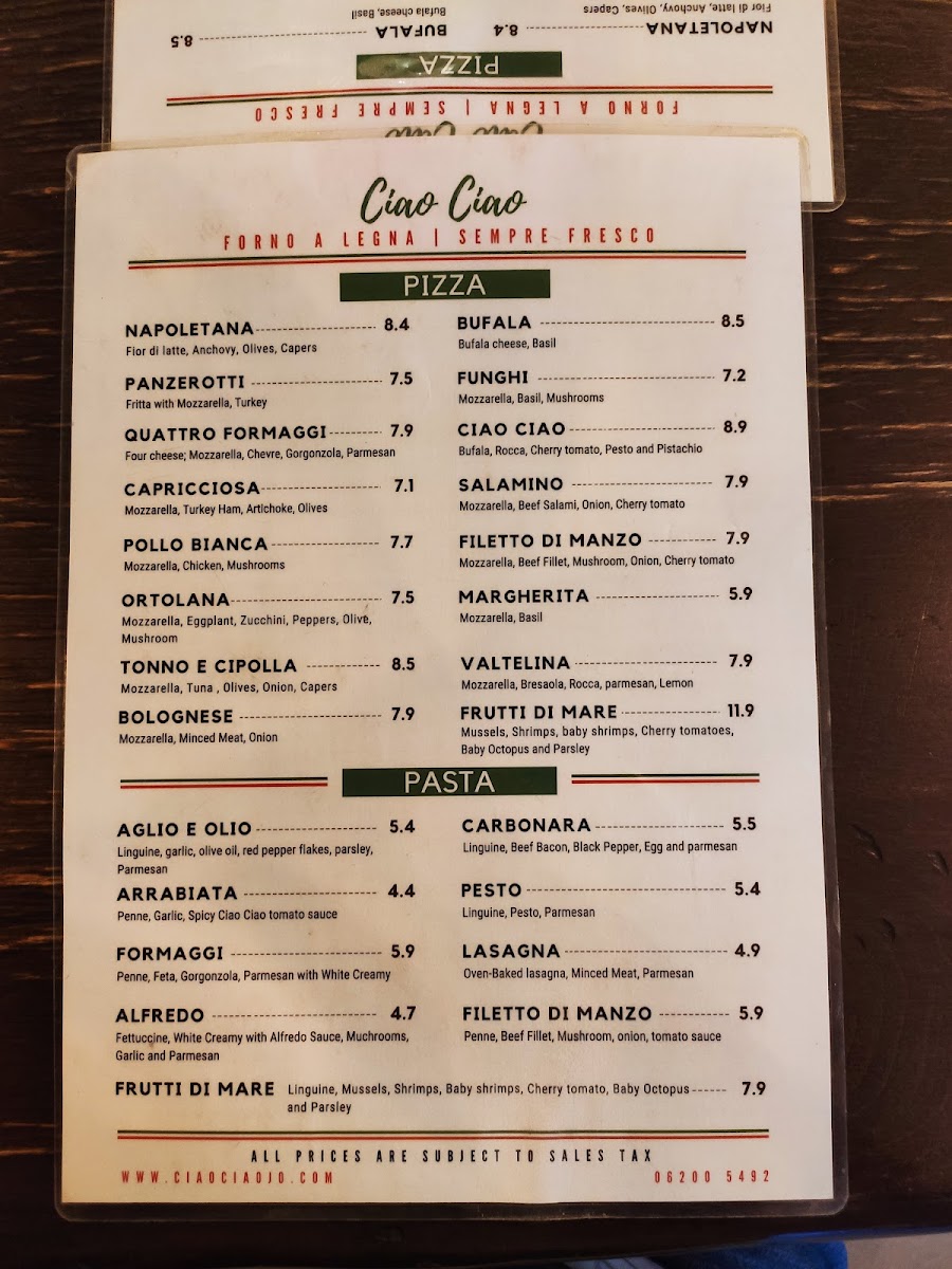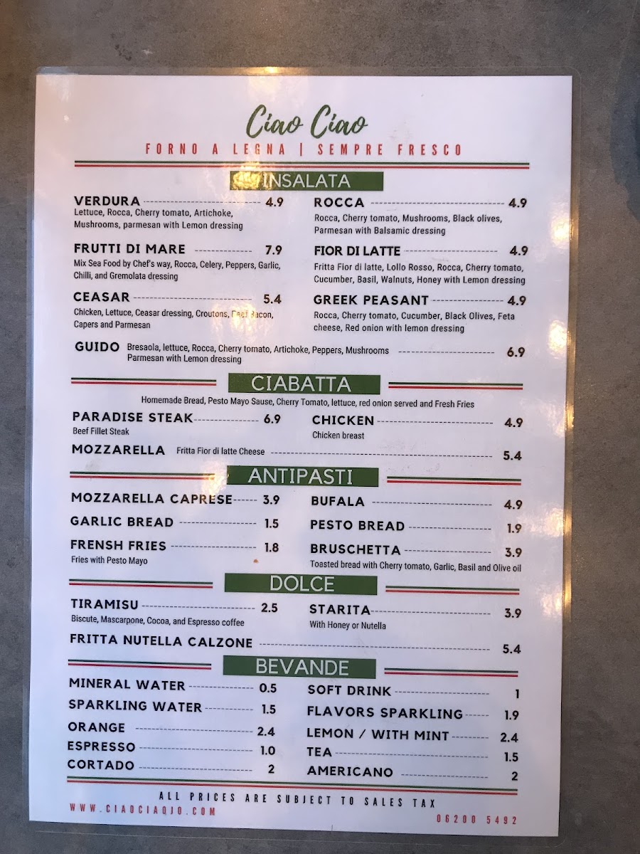 Ciao Ciao Menu